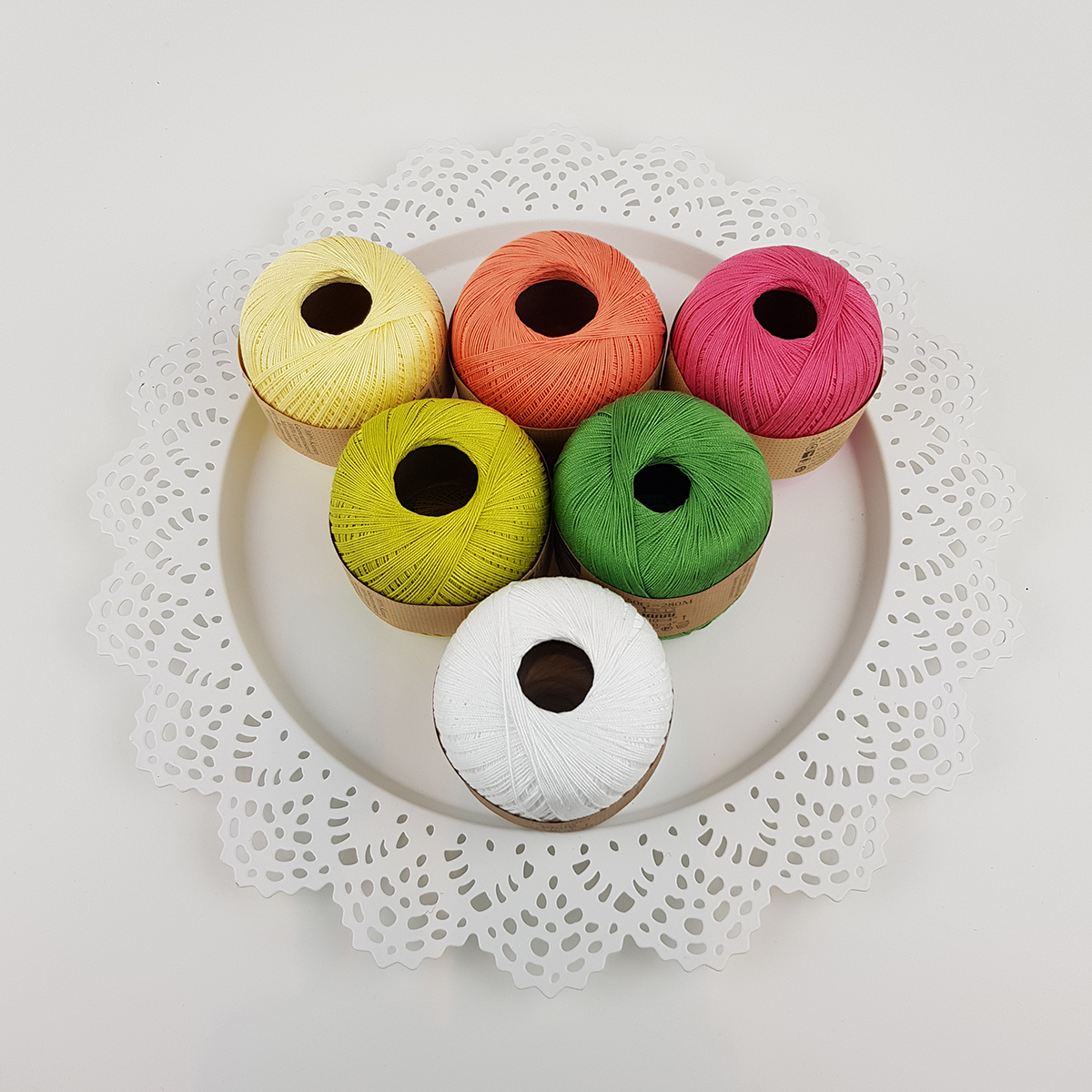 I detta paket ingår 6 nystan Sugar Rush 50 g, 1 x färg 106, 245, 256, 403, 410 och 412.